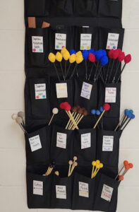 Your schedule, how many students you have, the size of your classroom, set-up time between classes, your classroom management routine and style, and more, ALL come into consideration when it comes to storing ALL of your instruments and their accessories. That will be another blog all by itself! But for now, here are some ideas for mallet storage: