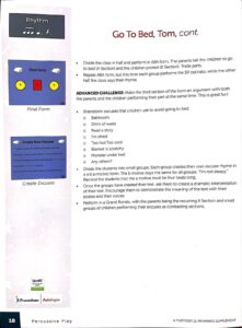What do I mean by brimming lessons?  Well, Percussive Play offers layers upon layers of possibilities within each lesson.  And because of these multiple layers (pathways), you can teach a lesson over multiple class periods, allowing the instruction to unfold over time.