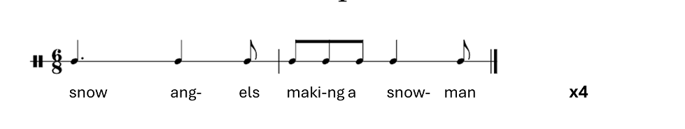 - Students choose 3-4 words to create a chain that will fit into 2 measures of 6/8 time.  Encourage the word chain to be repeated 4 times.  For example: