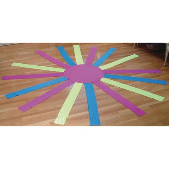 A highly adaptable, interactive way for your clients to build group cohesion through movement! Stretchy, colorful nylon-spandex material encourages exercise, playfulness, self-expression and awareness of others. Center circle provides strong visual focus. Each person attached to a "leg" acts independently but remains connected to the group, further adding to a sense of belonging. 5-1/2" hem attach to wrists and is easy to grasp. Washable. 16-leg Octaband for use with 4 to 16 people. Extends to 118".
