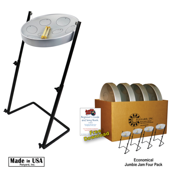 Jumbie Jam Steel Drum Educators 4-Pack – Metal Z-Floor Stand – Silver Pan (G)