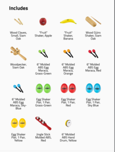 Get a range of percussion sounds in one set with the NINO® Percussion Mixed Rhythms Sets. This set contains a mix of pieces designed to help teach young musicians about percussion with hands-on use of real, fun-to-play rhythm instruments. Great for the classroom or at home. Suitable for 16 kids.