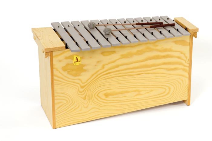 16 bars (6 bars 36 x 10 mm, 10 bars 32 x 8 mm) made of bright aluminum with a tonal range of C – A1.