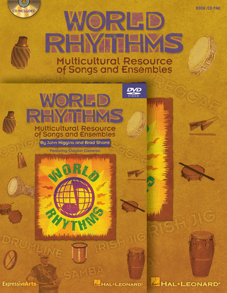 Pack your bags for an exciting musical journey of ethnic rhythms, instruments, and cultural heritage from around the world. Learn about the origins of Second Line Drumming, Reggae, Salsa, Conga, Samba and more, what instruments are used and how to play them. Then, experience the sound by forming your own ensemble and play the rhythm along with a song from that particular part of the world! Each ethnic rhythm is presented in a beginning format of 2-3 parts for younger students, and an advanced format of 4-6 parts for older students. Our eastern trek around the world begins in the United States and continues on to Central and South America before crossing the Atlantic Ocean with stops in Ireland, Africa, the Middle East and Far East, and ending on the island of Tahiti in the south Pacific. The all-in-one Book/CD format features reproducible songsheets with lyric translations, informative student articles and exceptional lesson plans based on the National Standards complete with lyric pronunciations, assessment and extension activities, and a CD recording for each song, with vocals and accompaniment-only tracks. And there's more! An instructional DVD is also available (separately or in a kit) with visual instruction on how to play the different instruments in each ethnic rhythm as demonstrated by a percussion expert. We've got a lot of miles to cover, so let's get started!